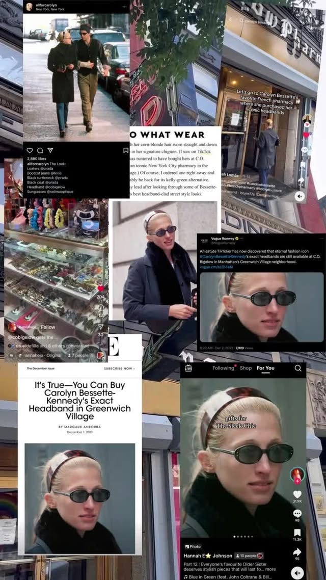 Carolyn was known for her flat-band tortoiseshell headbands from C.O. Bigelow in (an apothecary-type pharmacy in Greenwich Village). The NYT also reported that the wide band she wore (see above) was by Charles Wahba from Zitomer pharmacy.